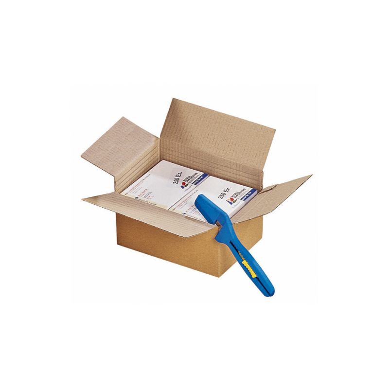 Fabriquée en carton simple cannelure avec un extérieur kraft résistant, cette caisse offre une hauteur ajustable grâce à ses découpes d’angle et ses 4 à 10 rainages espacés d’un centimètre selon le format (A5, A4, A3).